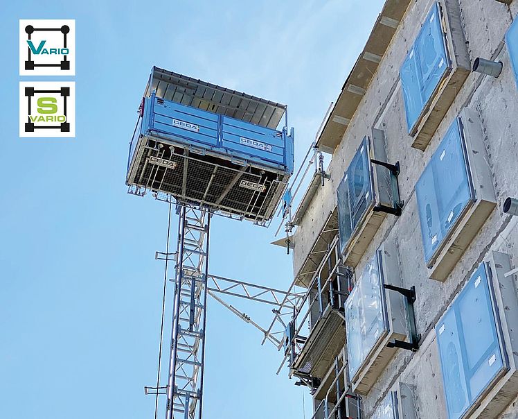 Das große Ladevolumen der Transportbühne GEDA 1200 Z/ZP ermöglicht die Beförderung auch sperriger und schwerer Baumaterialien an ihren Einsatzort - zügig und sicher. Dank zwei separater Steuerungen ist der GEDA 1200 Z/ZP sowohl als reiner Materialaufzug, mit einer Hubgeschwindigkeit von 24 m/min als auch als Transportbühne für die Beförderung von Personen und Material und einer Hubgeschwindigkeit von 12 m/min einsetzbar.