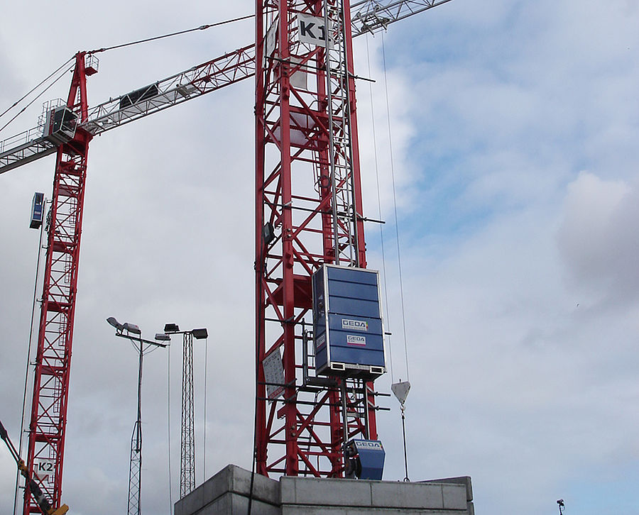 In kürzester Zeit – und vor allem sicher – befördert der GEDA 2 PK den Kranführer an seinen Arbeitsplatz in luftiger Höhe. Riskante, anstrengende Kletteraktionen bei oftmals schlechten Witterungsverhältnissen sind somit hinfällig. Das flexible System erlaubt die Aufzugsmontage an allen Krantypen sämtlicher Hersteller und standardmäßig bis zu 150 m Höhe.