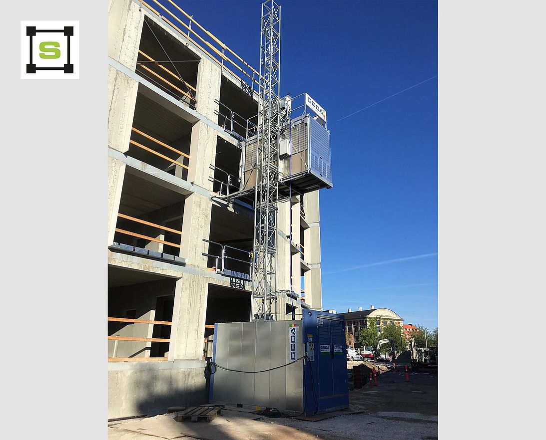Wo immer schwere Lasten in große Höhen befördert werden müssen, sorgt der neue GEDA BL 2000 für die notwendige Effizienz am Bau. Der Personen- und Materialaufzug ist mit einer Tragfähigkeit von 2000 kg bzw. 23 Personen und einer Hubgeschwindigkeit von max. 55 m/min das neue Kraftpaket aus dem Hause GEDA und sowohl als Single- als auch als Twin-Variante erhältlich. Die Bühnengröße von 1,45 x 3,20 x 2,10 m erlaubt auch den Transport von sperrigen Gütern bis zu einer Förderhöhe von 250 m. Für noch mehr Komfort und Bedienerfreundlichkeit wurde der Aufzug mit umfangreichen Steuerungsvarianten der neuesten Generation ausgestattet.
